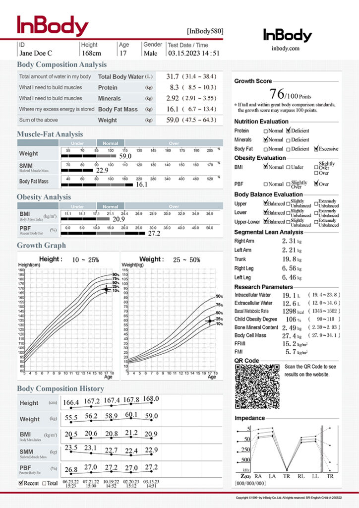 InBody Result Sheet for Children, which allows you to see the growth and physical development at a glance, provides a standard curve for children's growth so that children can easily check their growth status.